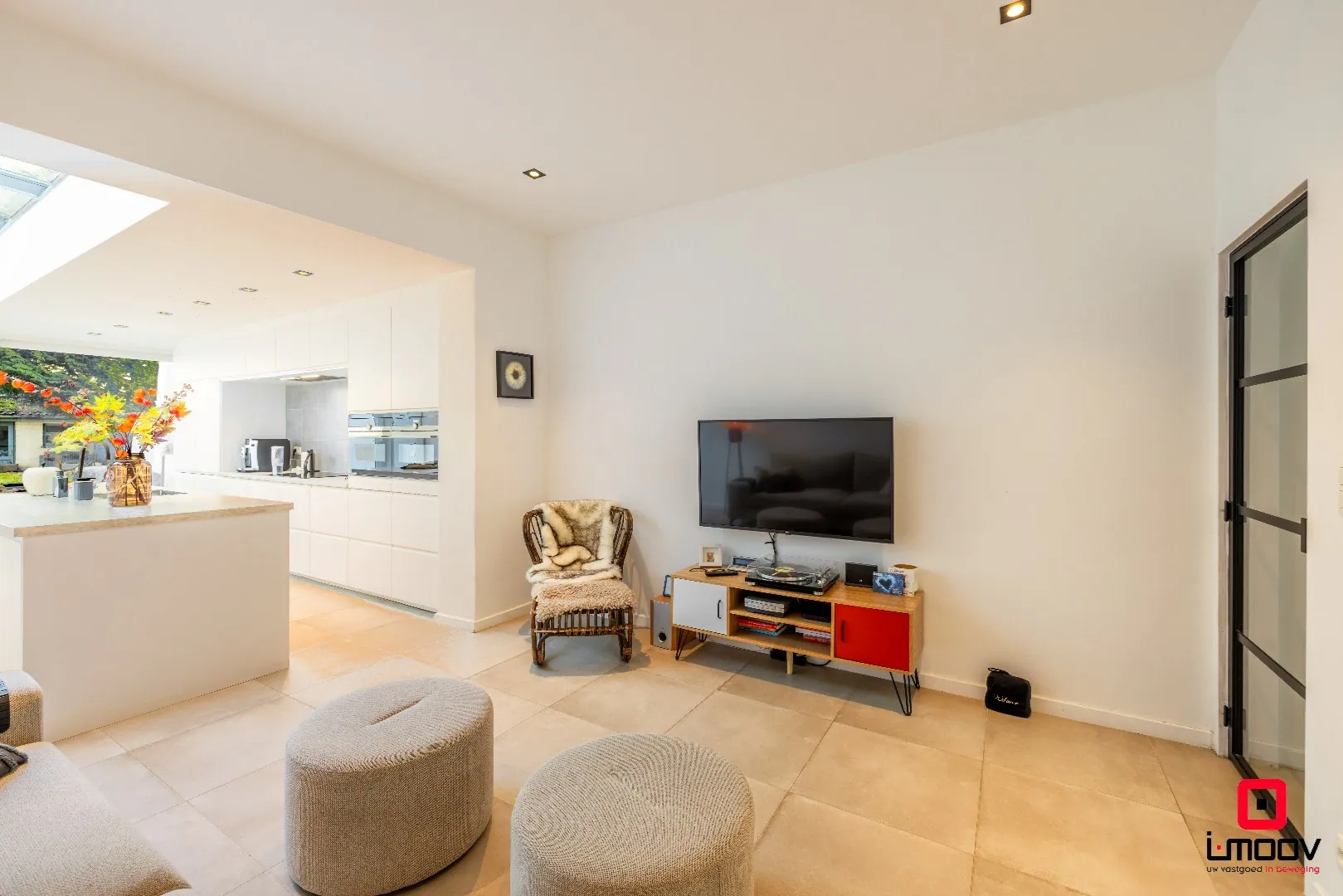 Bij het betreden van de woning komt u binnen in de inkomhal, die uitgeeft op de lichtrijke leefruimte met open, volledig geïnstalleerde keuken. Dankzij de lichtstraat baadt deze ruimte in natuurlijk daglicht en ontstaat er een aangename, open sfeer. Aansluitend bevindt zich de badkamer met slaapkamer en de toegang tot de tuin.