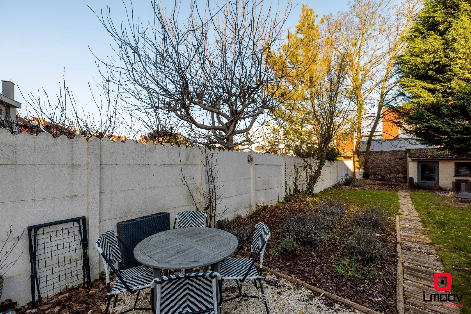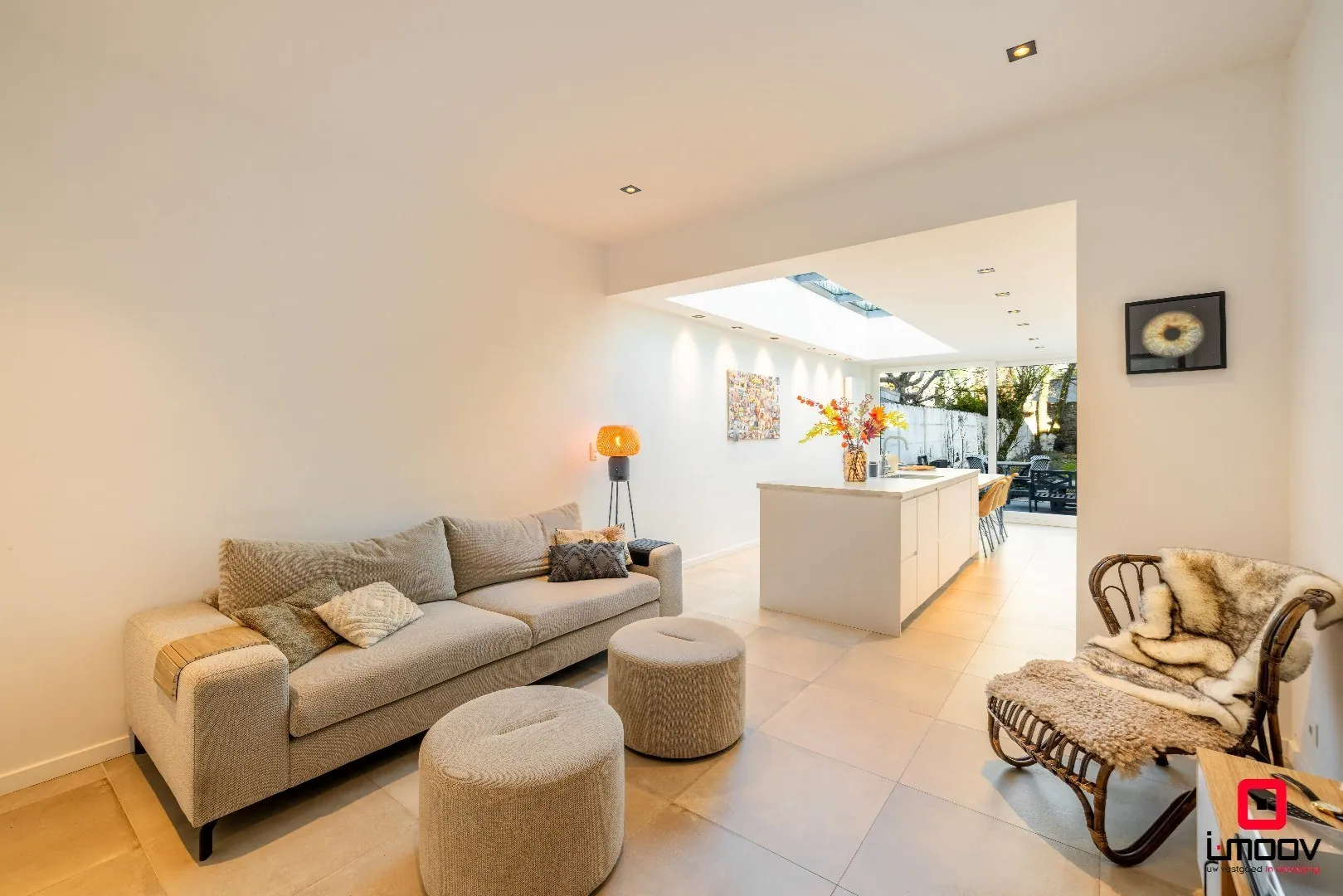 Bij het betreden van de woning komt u binnen in de inkomhal, die uitgeeft op de lichtrijke leefruimte met open, volledig geïnstalleerde keuken. Dankzij de lichtstraat baadt deze ruimte in natuurlijk daglicht en ontstaat er een aangename, open sfeer. Aansluitend bevindt zich de badkamer met slaapkamer en de toegang tot de tuin.