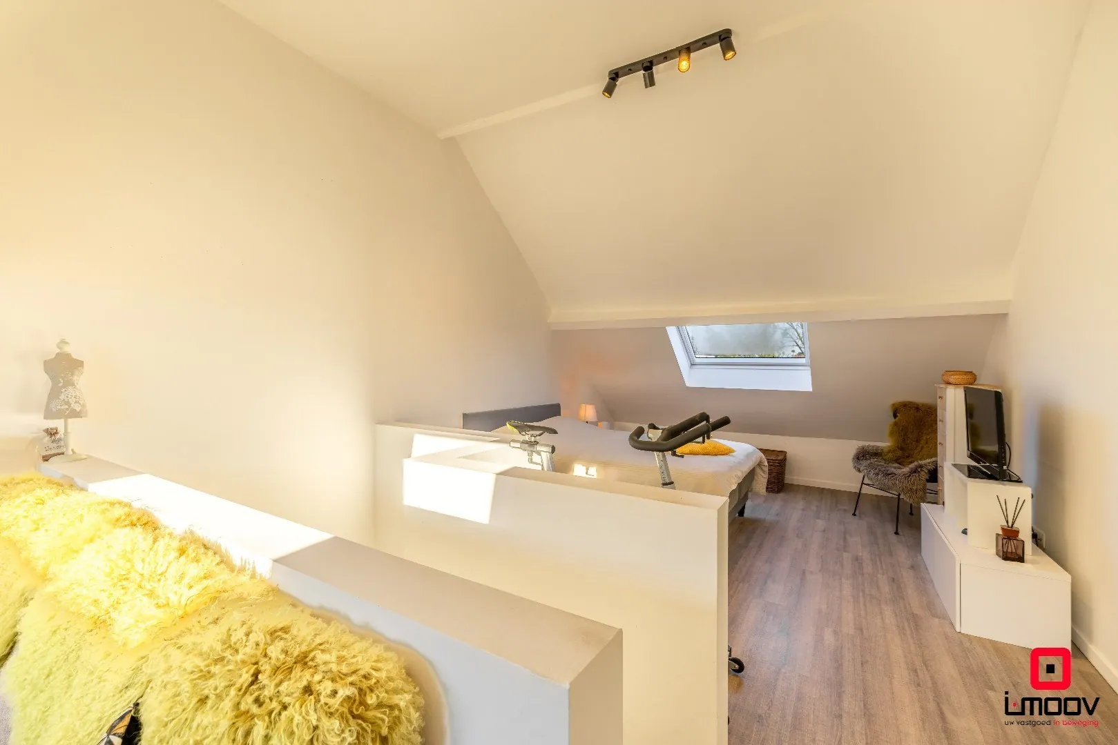 Op de eerste verdieping bevindt zich een ruime slaapkamer, samen met een tweede, volwaardige badkamer. De bovenste verdieping is vandaag ingericht als één grote slaapkamer, maar biedt verschillende indelingsmogelijkheden. Deze ruimte kan eenvoudig worden heringericht tot twee slaapkamers, of tot een combinatie van slaapkamer en keuken of leefruimte, wat interessante perspectieven opent voor kangoeroewonen of het creëren van twee afzonderlijke woonunits.