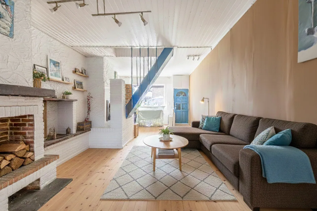 De woning werd in 2021 volledig gerenoveerd met oog voor kwaliteit, lichtinval en afwerking. De gezellige leefruimte met haard vloeit naadloos over in de moderne keuken, waar een lichtkoepel voor extra daglicht zorgt.