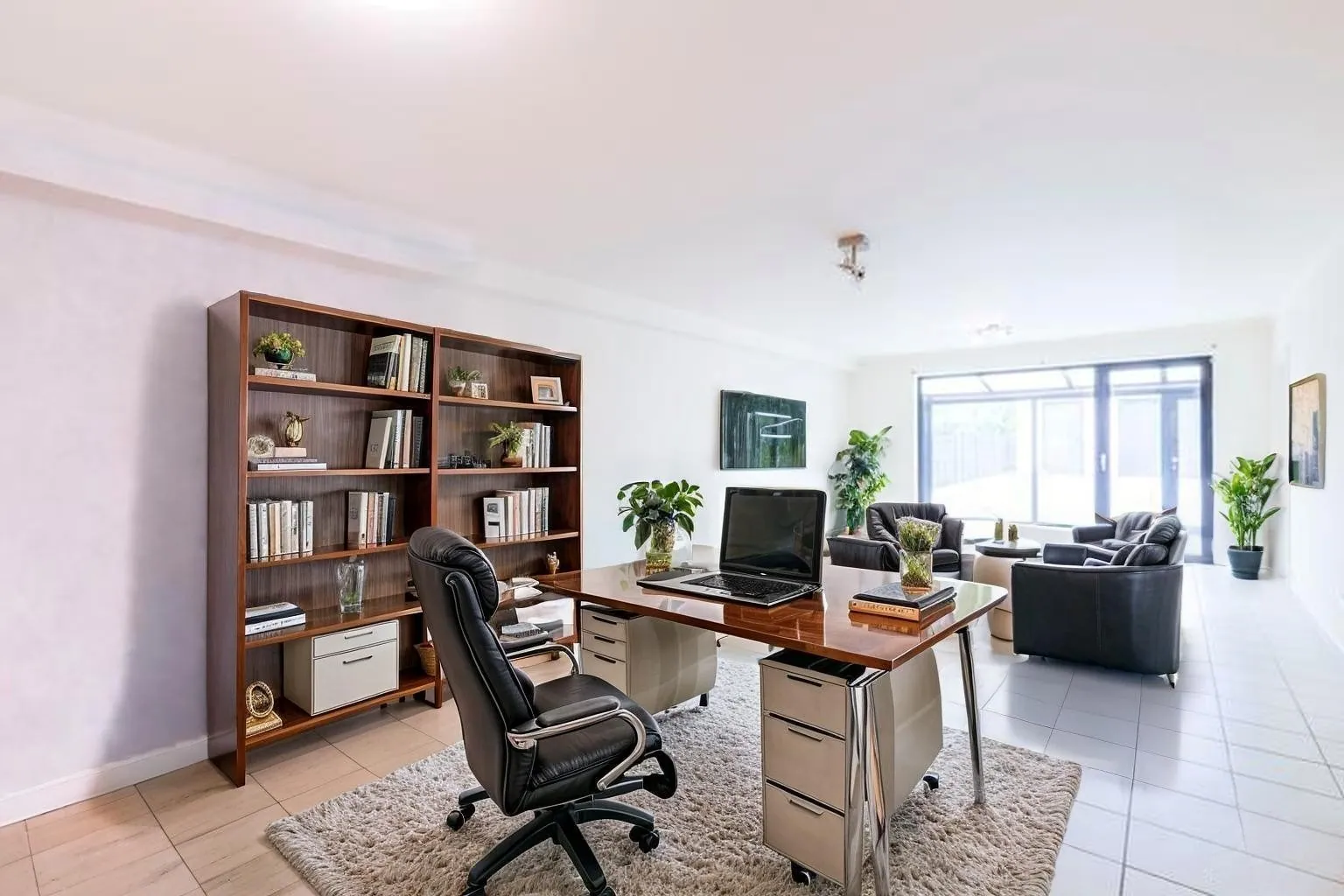 Binnenin is de ruimte momenteel opgedeeld in twee delen, maar deze kunnen eenvoudig met elkaar worden verbonden. De achterste zone kan volledig naar wens worden ingericht, als extra winkelruimte, bureel, pasruimte, opslag, personeelsruimte of ontspanningshoek. Daarnaast is er een veranda en ruime garage, wat nog meer mogelijkheden biedt.