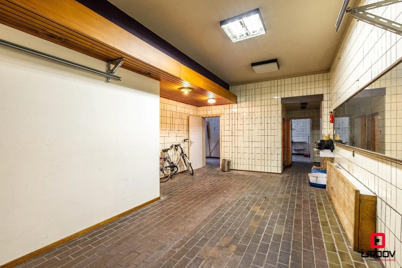 Op het gelijkvloers vinden we een garage met werkhuis van de voormalige beenhouwerij van ca. 60 m², aangevuld met een extra kelder. Ideaal voor wie nood heeft aan opslag, hobbyruimte, atelier of zelfs een professionele activiteit aan huis.